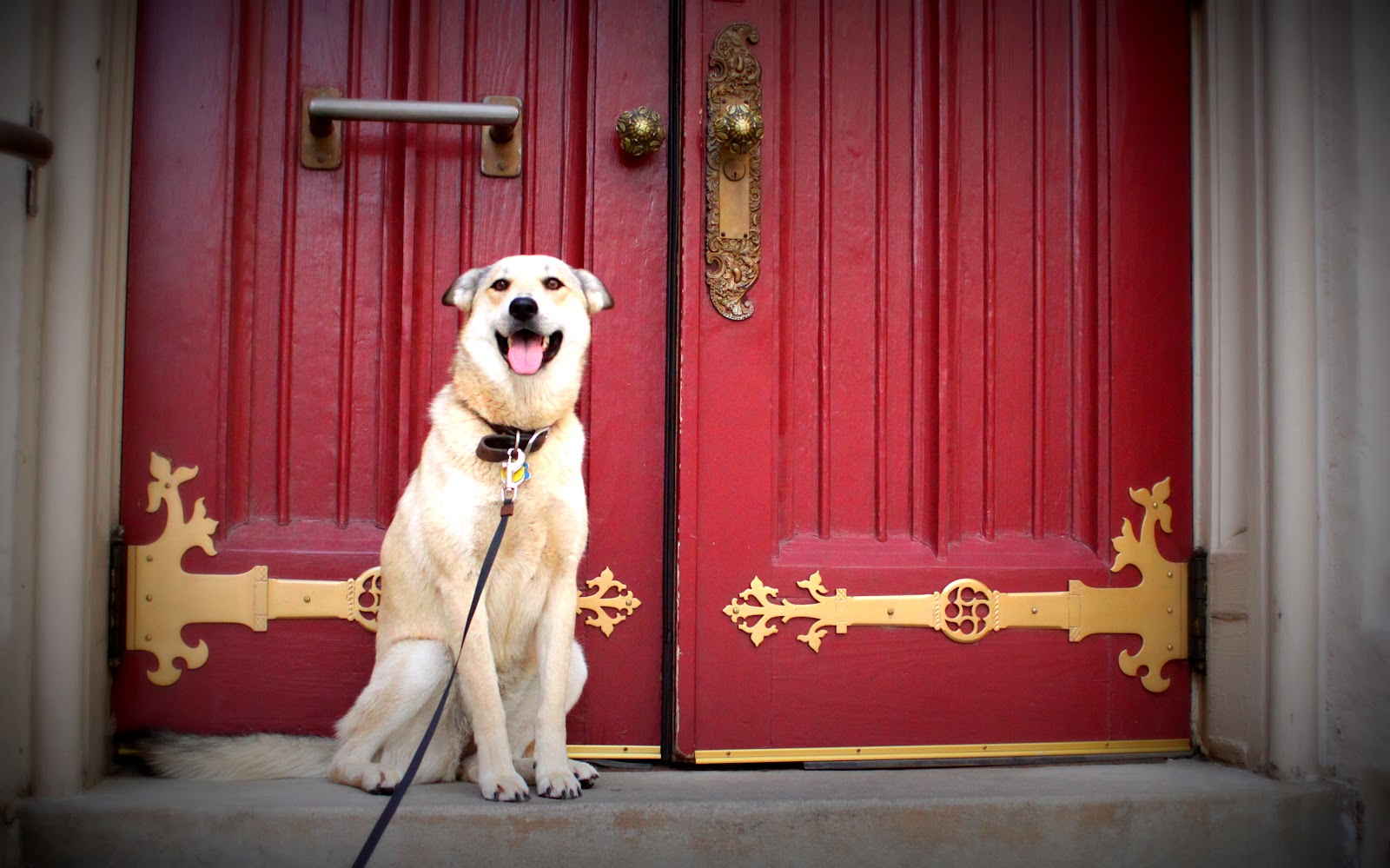 You would never have guessed that she had never been to a downtown area before. She just wandered around on her leash and happily sniffed and snuffed. This is Elsa in front of St. Patrick's Cathedral with a little Lomo-ish retouching. I love how the lomo-ish setting makes the door color pop. There Elsa, now you've been to church.